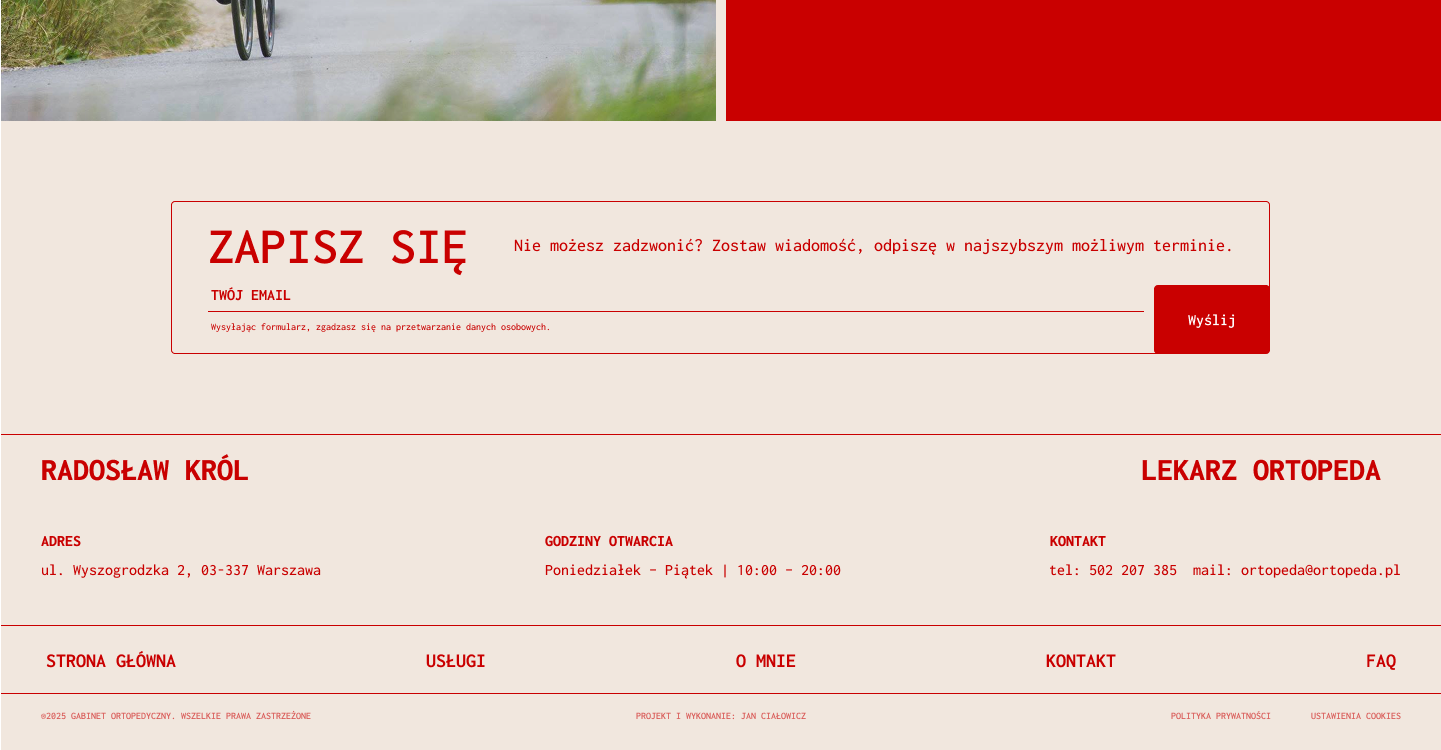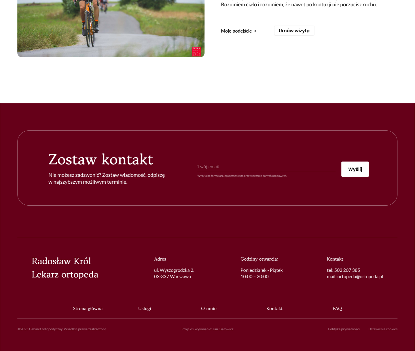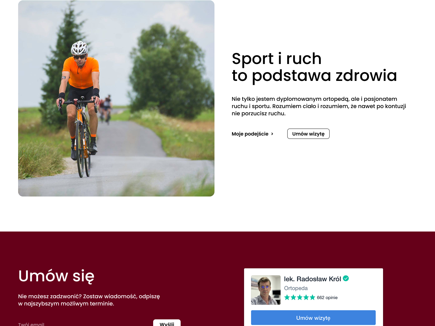 Miejsce na proste umówienie wizyty przez Znanego lekarza lub zostawienie adresu email.