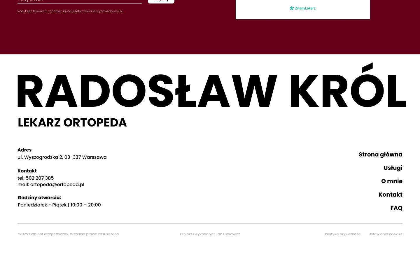 Jak na stronie głównej, formularz do zostawienia maila i przycisk do umówienia wizyty przez ZnanegoLekarza